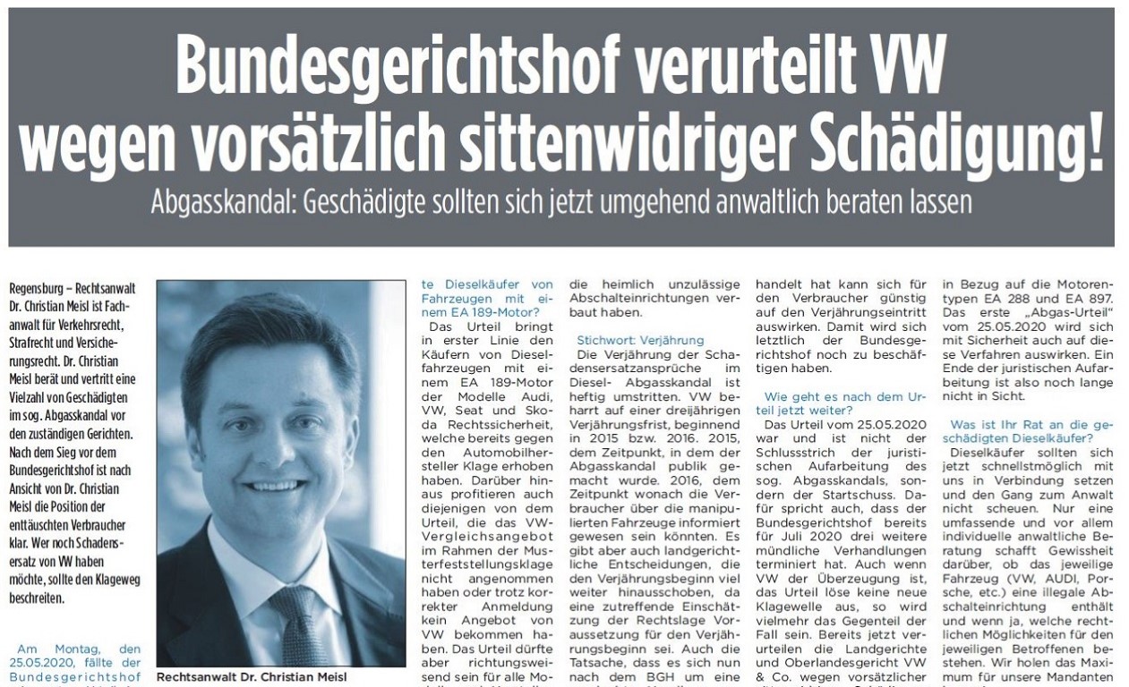 Dr. Christian Meisl zum Dieselskandal und was Betroffene tun sollten